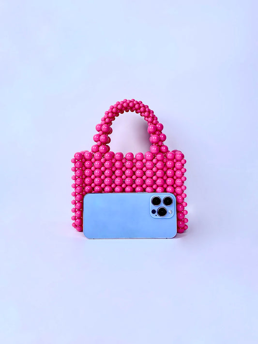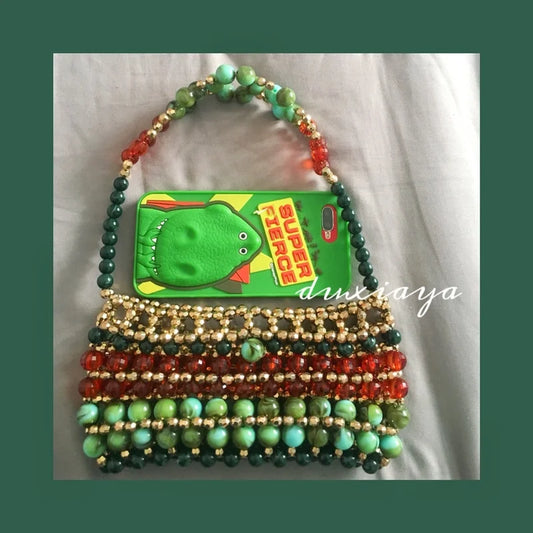 New French High Quality Acrylic Pearl Bag Women's Handmade Beaded Weaving Fresh and Sweet Handbag