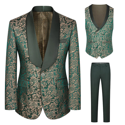 FIXRIMCH Formal Tuxedo Suit for Men Embroidered Paisley Blazer Jacket Vest Pants Set for Wedding PartyDinnerProm Green